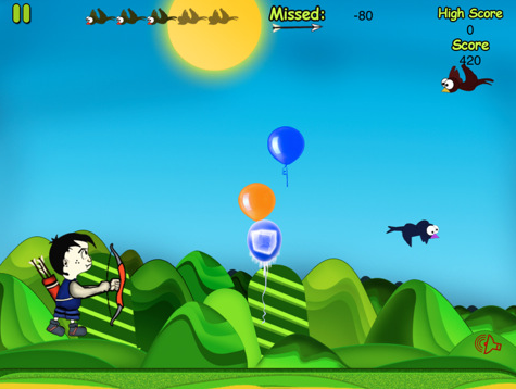 Load your quiver and aim at the balloons and hit as many balloons as you can to score more. Try hitting many balloons with a single arrow as the number of arrows is limited.