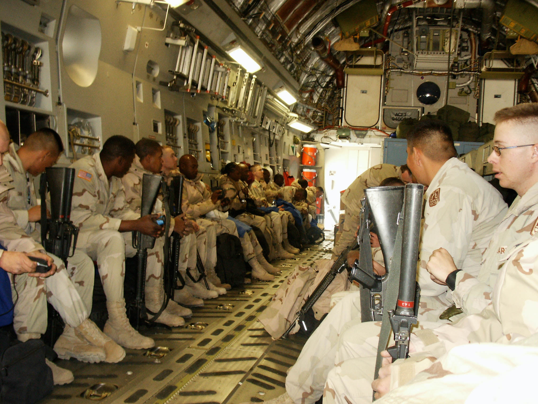 Flew from Kuwait City to Fort Huachuca, AZ in one. Once in flight, we spread out and slept on the floor.