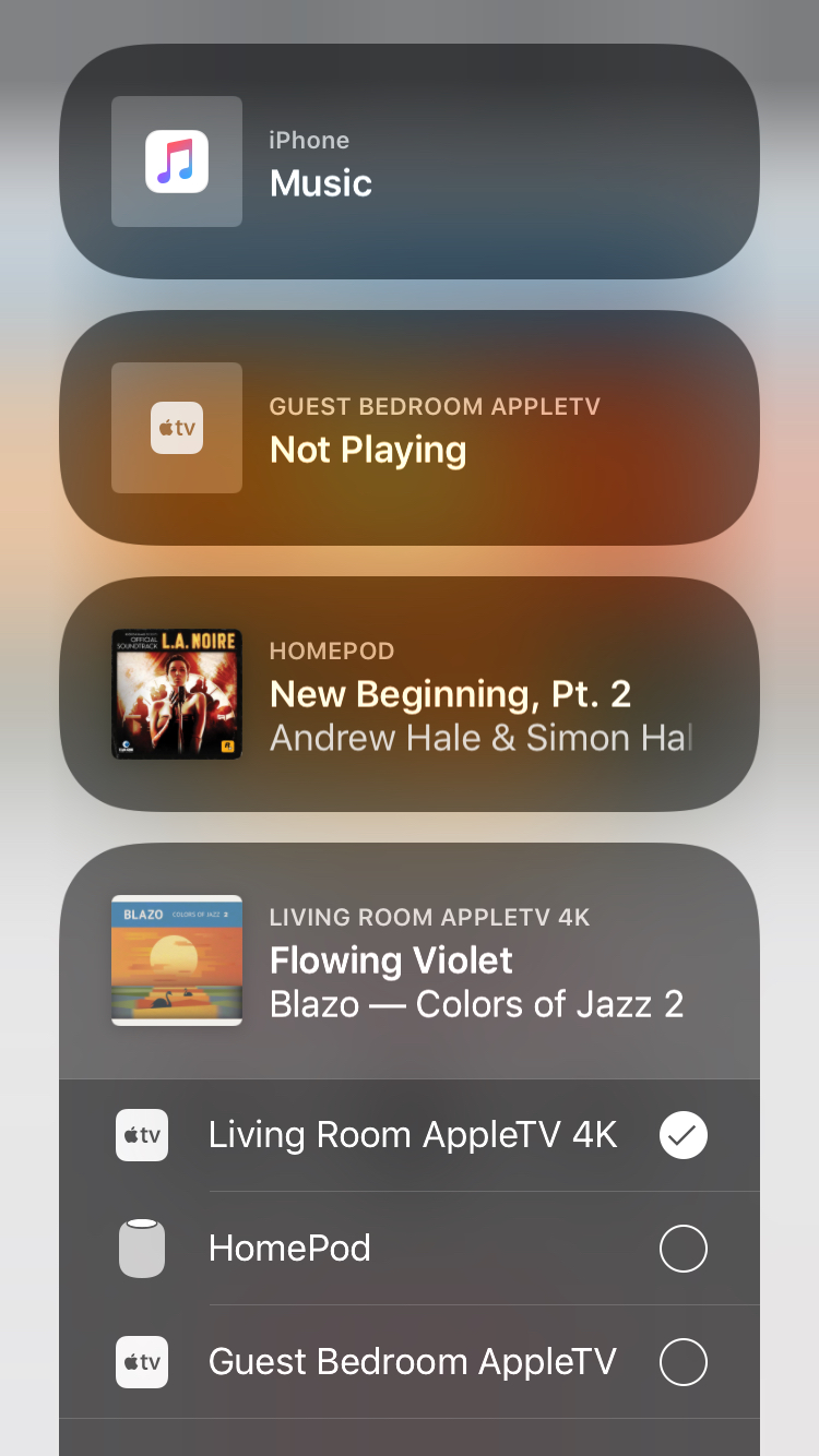 It's slightly better if I ask my HomePod to 'play Foo Fighters in the Living Room', as it will stream the music from the HomePod to the Living Room (and any other destination I specify). This means I can turn off my phone, use it to make calls, etc. However, the HomePod in my kitchen is now 'in use'. If I then ask my HomePod to play something else in the kitchen, Foo Fighters will stop playing in the Living Room.