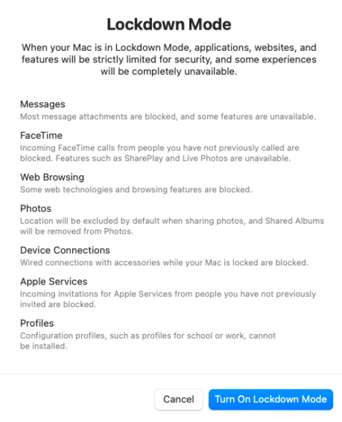I don't wish to disable Lockdown Mode.AirPlay blocked: Lockdown Mode is preventing AirPlay connections to your Mac. You can manage Lockdown Mode in Privacy & Security settings.