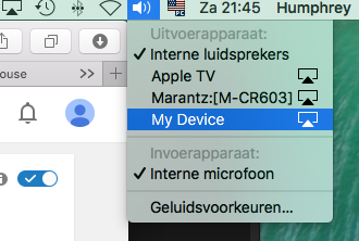 Anyone else seeing this? Pressing Alt with volume icon to bring up the Airplay options suddenly serves me a new 'option'; My Device. No idea what this could be...anyone?