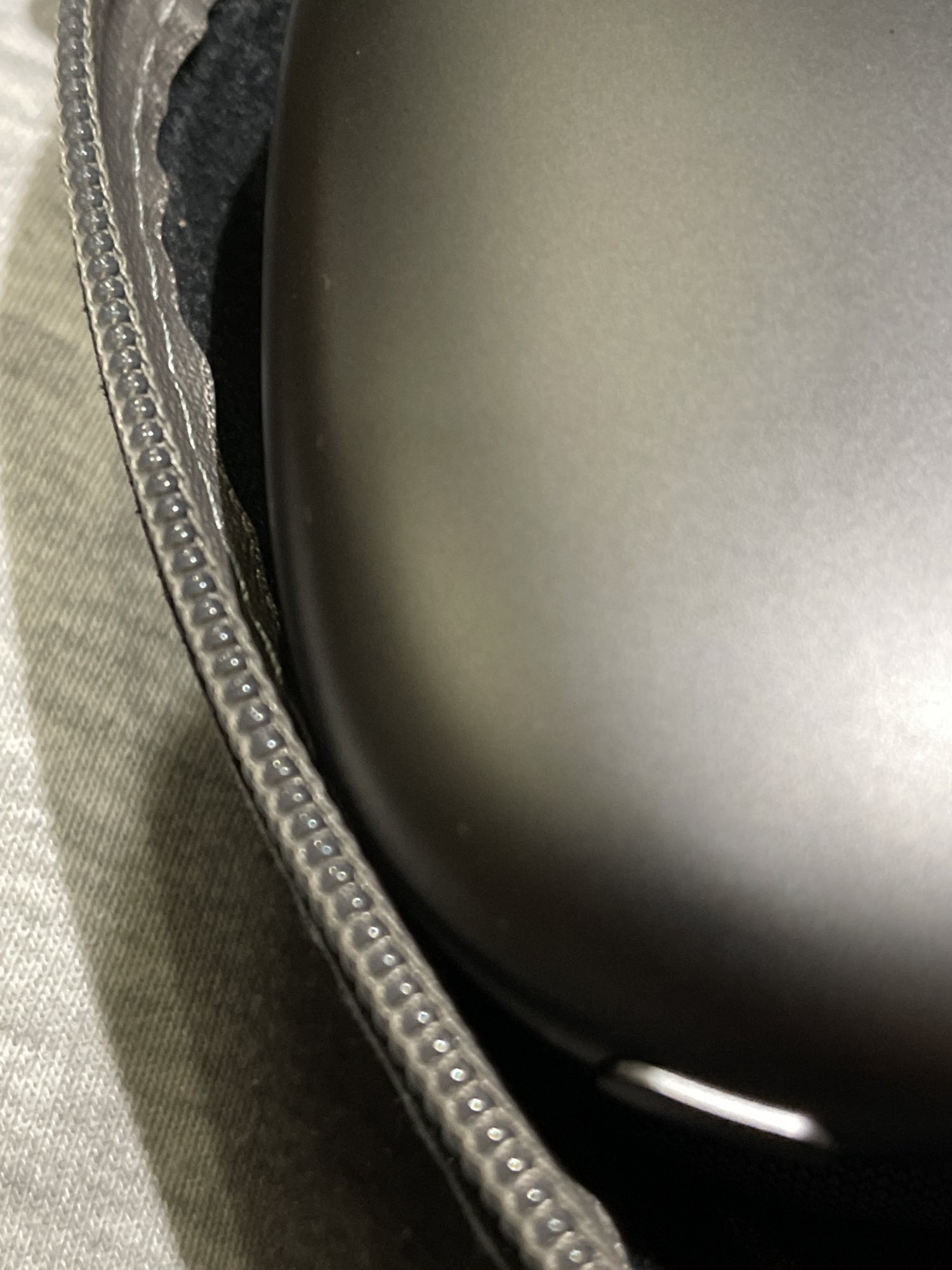 There‘s one case on Amazon that has a lip inside of the zipper to prevent contact, but it only accommodates the AirPods with telescoping arms pushed all the way in, which makes it a no go for me. This is the one https://www.amazon.com/co2crea-Carrying-Replacement-AirPods-Headphone/dp/B08R7641MM/ref=sr_1_1_sspa?dchild=1&keywords=Geekria+AirPods+max&qid=1610210575&sr=8-1-spons&spLa=ZW5jcnlwdGVkUXVhbGlmaWVyPUEyU1pZWVM5Q1dQSzRFJmVuY3J5cHRlZElkPUEwNzgxNzk1MTNDMjE3Q0QxME5JUSZlbmNyeXB0ZWRBZElkPUEwNjI0MTkyS1ZKNFdURzc5R05CJndpZGdldE5hbWU9c3BfYXRmJmFjdGlvbj1jbGlja1JlZGlyZWN0JmRvTm90TG9nQ2xpY2s9dHJ1ZQ&th=1