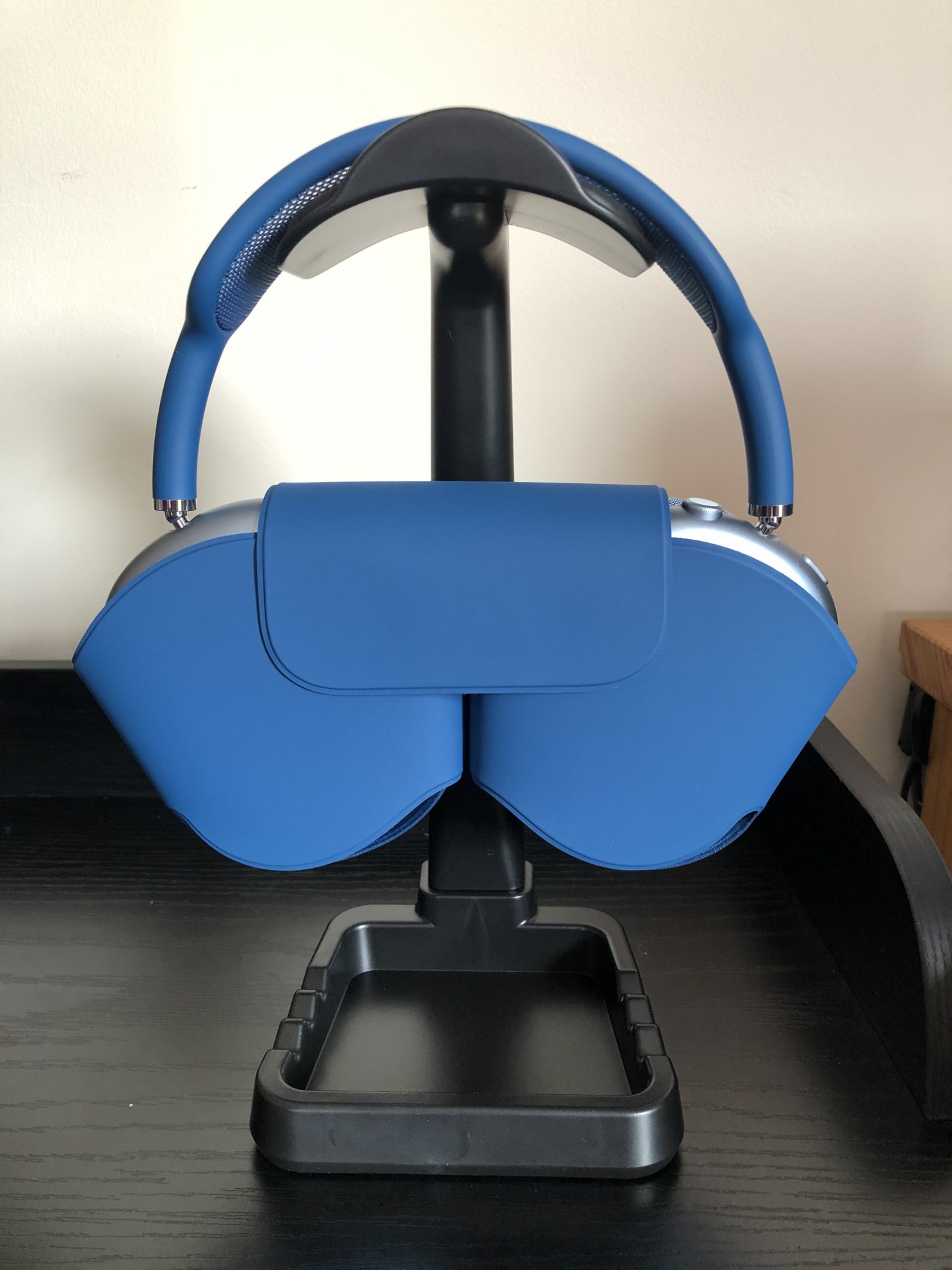 I want to see if there would be any issues having the AirPods Max rest on a desk headphone stand. Shown here is the AirPods Max resting on the Grovemade headphone stand.