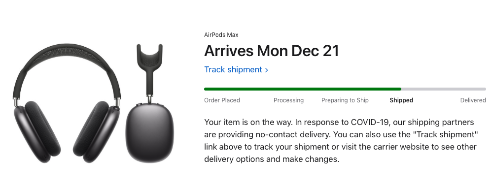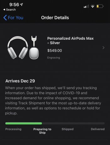 I checked my FedEx account and it shows two cancelled shipments from Apple today. I ordered one pair early on announcement day. Apple still says arriving between 12/15 and 12/17.View attachment 1693481