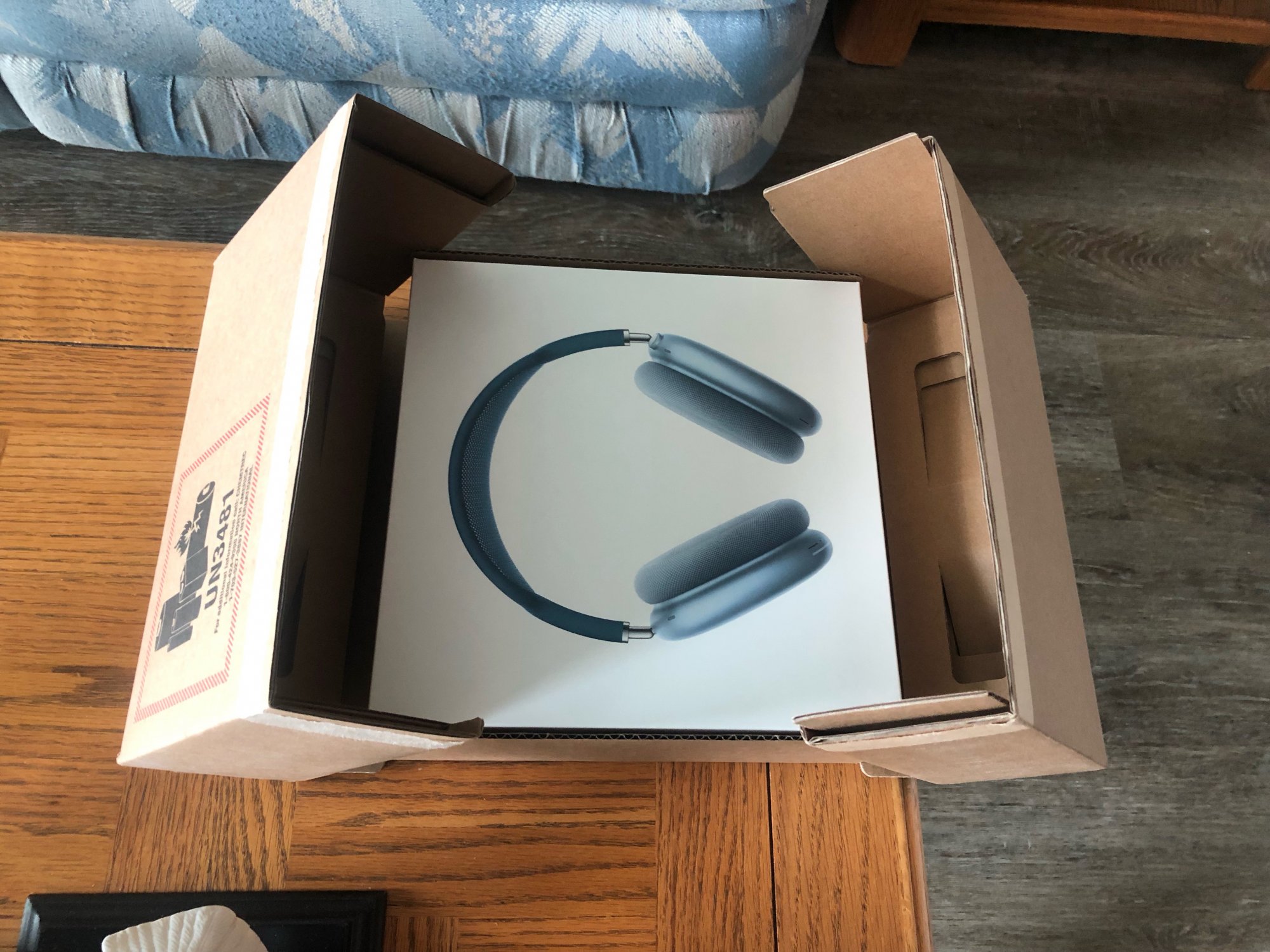 Oh right, yea postage box was opened by the seller to take a picture of the sealed box inside, the serial numbers all match. Not sure how that matters when the headphones inside are completely sealed.