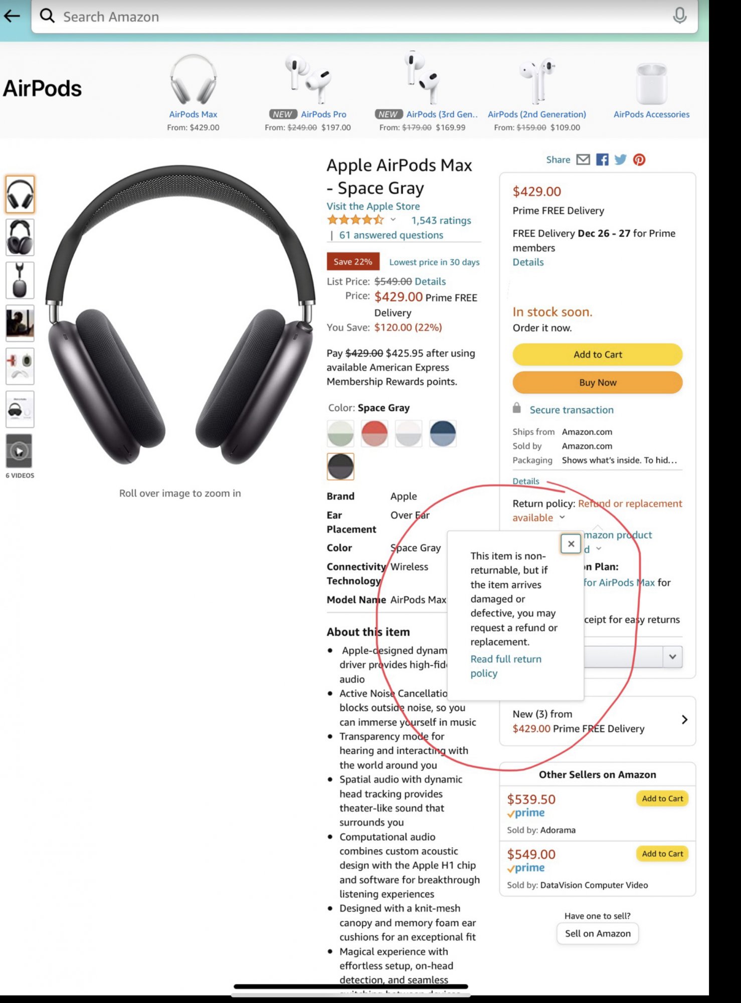 Looks like the space gray AirPods sold at that price are the non returnable. The other ones can be returned, no problem.