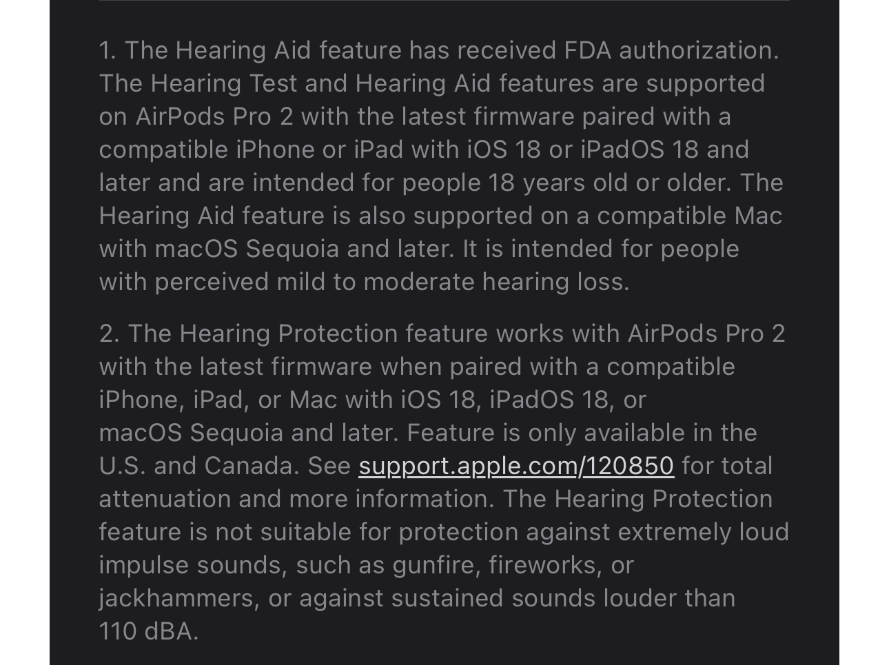 I am in the UK and overnight my Airpods updated to the latest firmware. Sadly the UK is not on that list. Why update the firmware if 18.1 if the Airpods can’t work with the new hearing test etc?I just checked where hearing aid features are available : Features require AirPods Pro 2 with firmware version 7B19 or later. All features may not be available for all countries or regions, for more information visit: https://apple.com/airpods-pro/feature-availability/