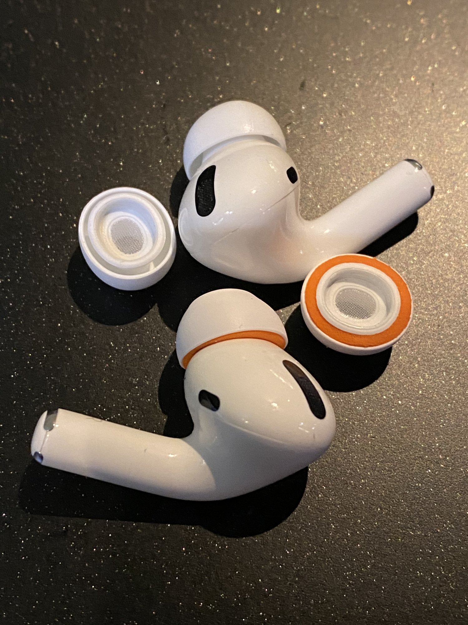 Sure. I originally did the medium tips (Symbio medium to AirPods Pro medium) but I just did the large as well, and took some pictures (click to enlarge). The whole process took about two minutes. The original/unmodified tips are on the left, in all the pictures (for comparison's sake).Nice! Can you please describe how you did it (including what size of each kind of tip you used)?