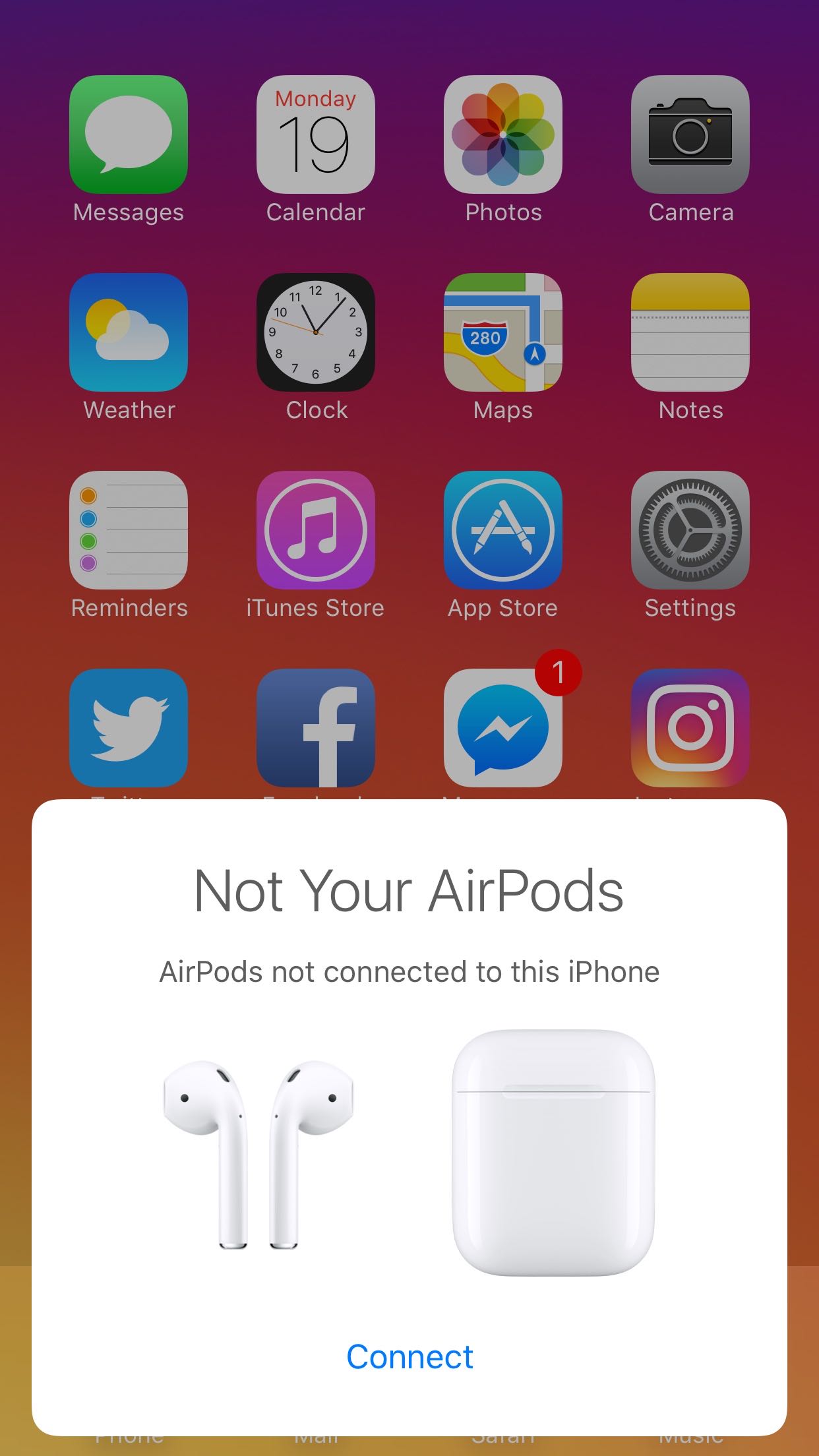 What do you mean by the last part? Suppose I am on an Airplane and someone sitting next to me has an iPhone and I open my case, it will show that dialog box on their iPhone. What will happen when they press 'Connect'? If someone sitting next to me can connect to my AirPods then that's a big flaw.
