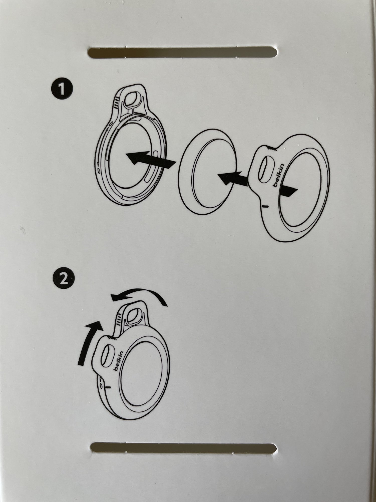 I don't think the instructions do a good job explaining the orientation but it definitely shows the smaller, chrome part of the AirTags as facing the side with the Belkin logo. I'm guessing that side has a larger lip to keep the AirTag cover in place.Interesting! As far as I can see, each side of the Belkin keychain is pretty much identical (aside from the markings), so I don't think it would make any difference. The instructions also do not make any reference to one way being more correct than the other. But I will try reversing it to see if it makes any difference.