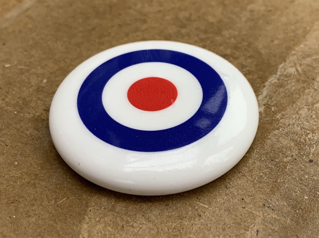 IRL the edges look slightly chewed but they are not, this is because of the clouds bordering the ring. If doing a decal to fit an AirTag that isn't going into a keychain then possibly it's best to add a solid ring graphic to show it's perfectly round - again this won't matter in the dark blue Apple keychain I have.