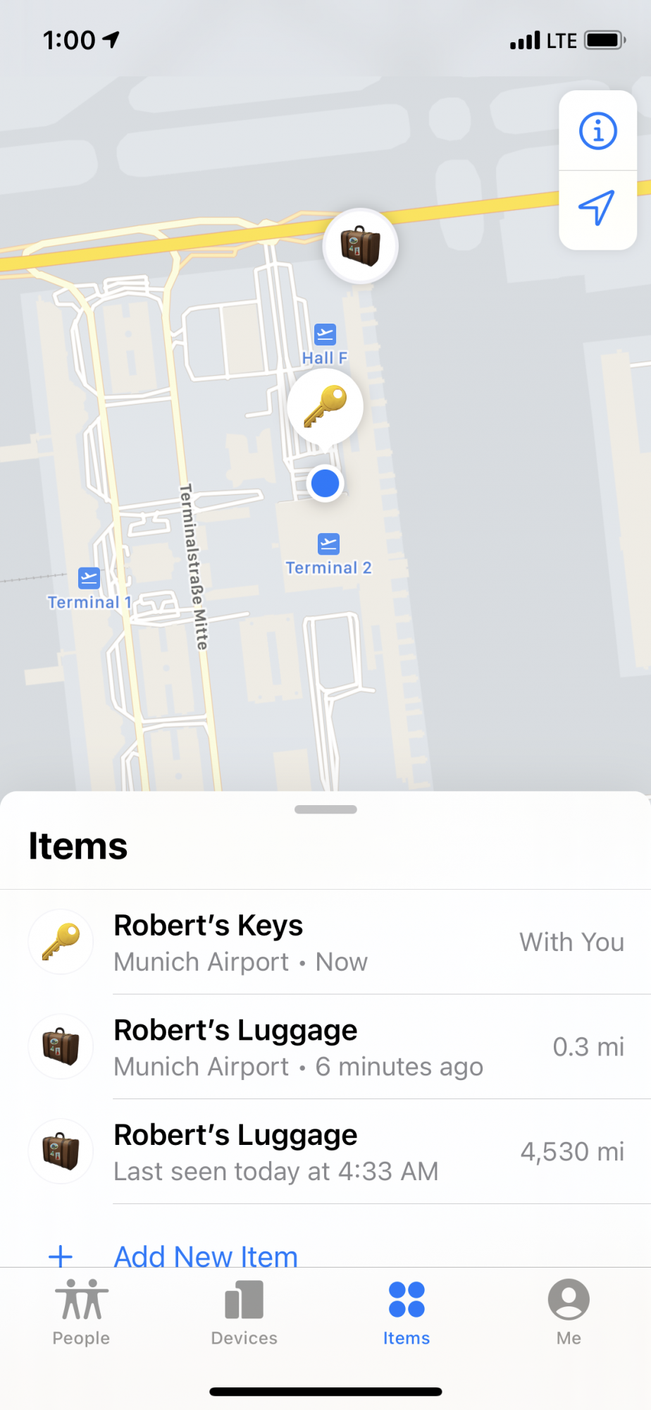 Just completed the outbound leg of the LAX-MUC flight with three Airtags - one on my keys and one in each of two suitcases. Here's how it went from LAX-ORD-MUC.