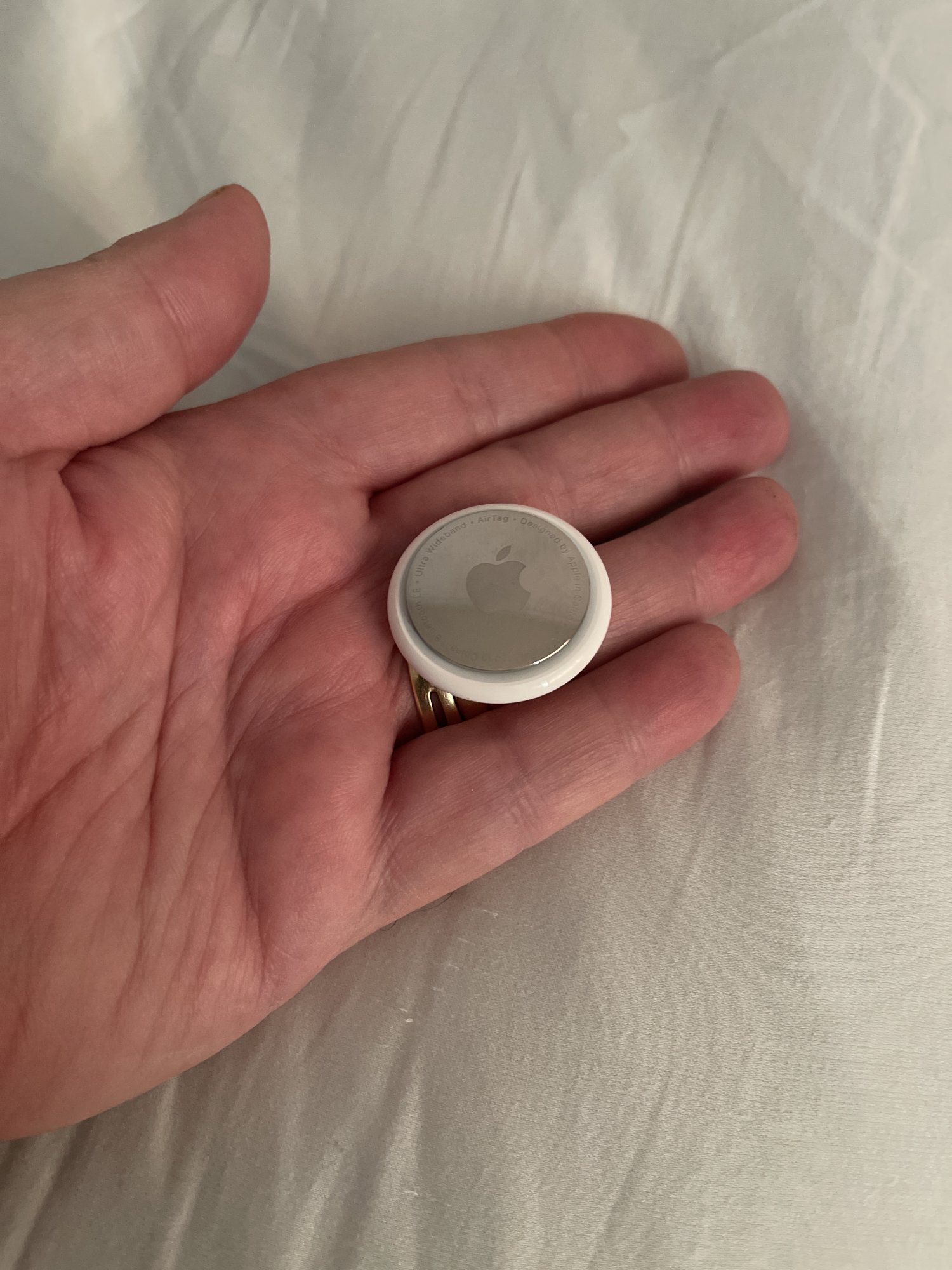 The AirTag has a pretty small diameter, maybe a hair larger than a typical bottle cap. It’s thicker than I expected, and probably won’t fit in a slimline wallet.