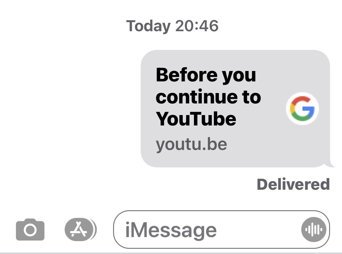 I've never seen that when sharing a YouTube video via iMessage. It just shows the title and thumbnail of the video as it does on the YouTube site itself.I’m sick of these every time I send a link through YouTube