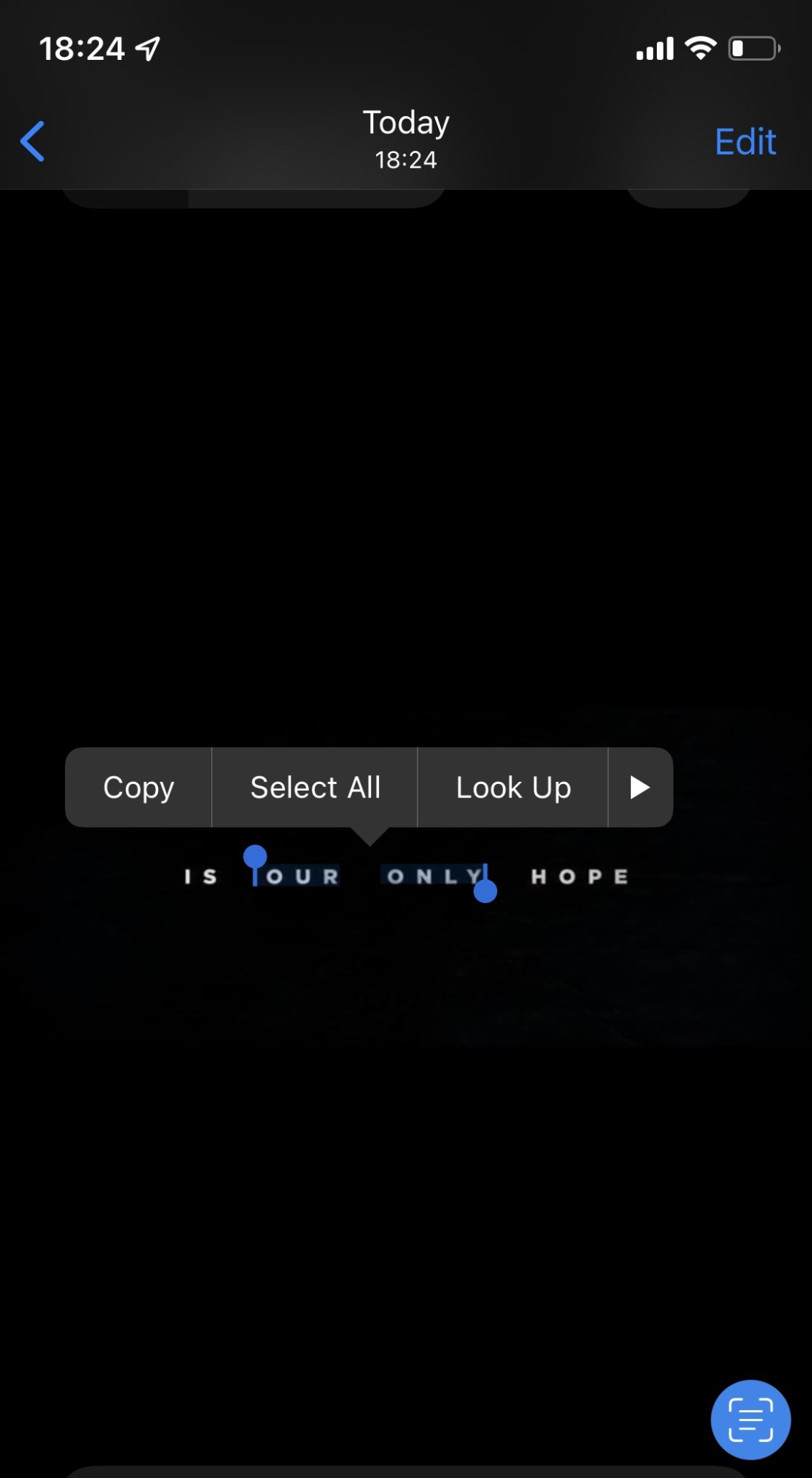 To copy text in a video, pause it on the frame that you want and then touch and hold on a word. You can grab the two blue markers to narrow or widen your selection, and then you can press and hold to get to options like translate and copy.