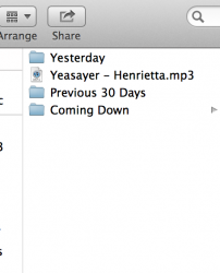 These aren't real folders or files, but Finder is displaying these as folders, e.g., "Yesterday" or "Previous 30 Days".