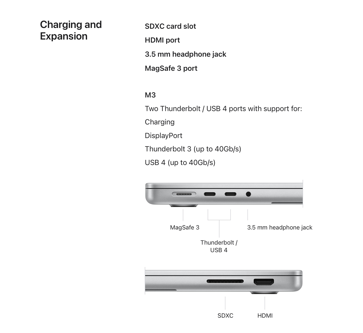 The M3 14" MBP has two TB4 ports and supports multiple monitors.It's an extra 3 Thunderbolt 4 ports, because the M3 MacBook Pro has exactly zero Thunderbolt 4 ports.They are TB3.