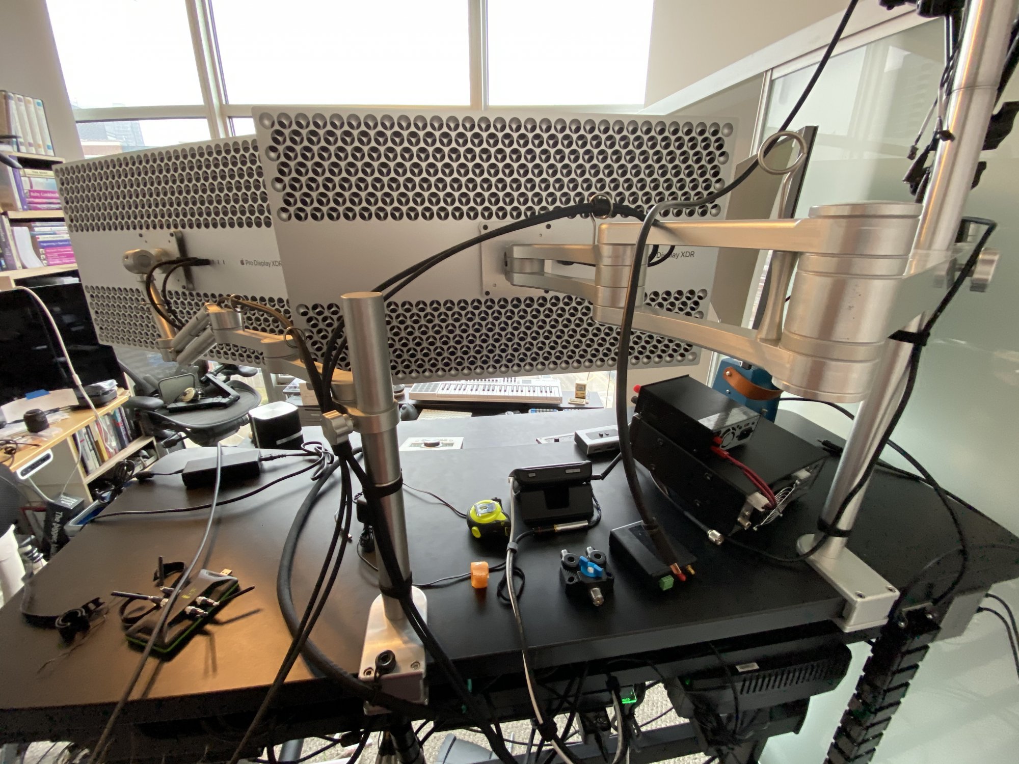 If you buy from them, note that the XDRs are too large to be mounted horizontally side-by-side on their "double" arm — In the above photo on the right, I'm using a "triple" arm, with no monitor mounted in the middle.