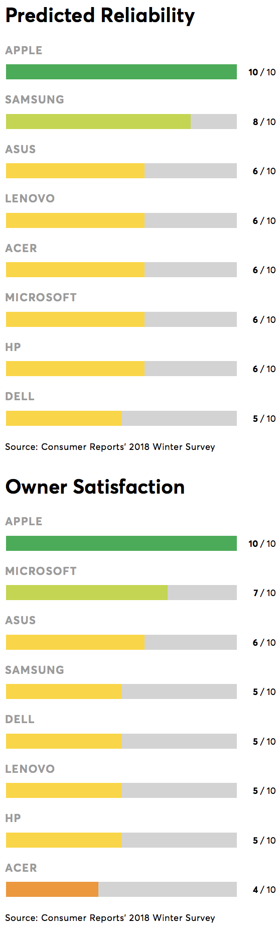 You're not alone. The latest Consumer Reports survey of laptop owners in Winter 2018 (36,919 surveyed):