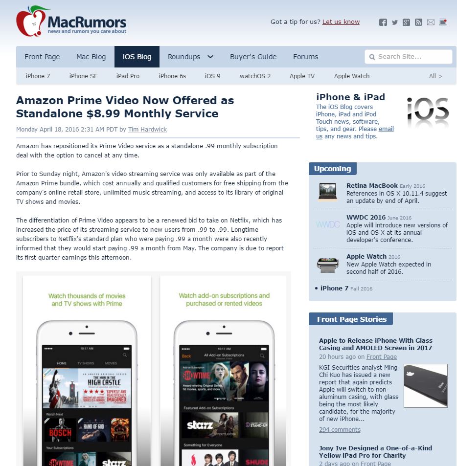 Article Link: Amazon Prime Video Now Offered as Standalone $8.99 Monthly Service