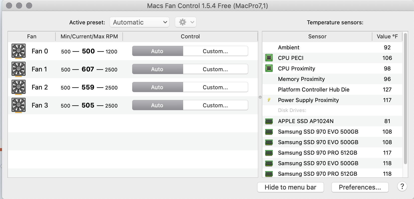 Is this normal operating temperatures? I tried to download Fan controller but it doesn't detect the Mac Pros fans.