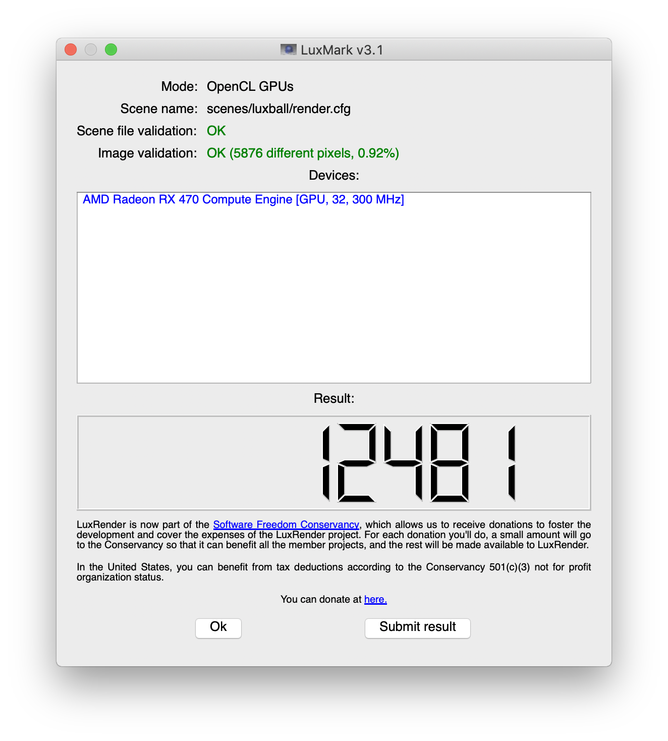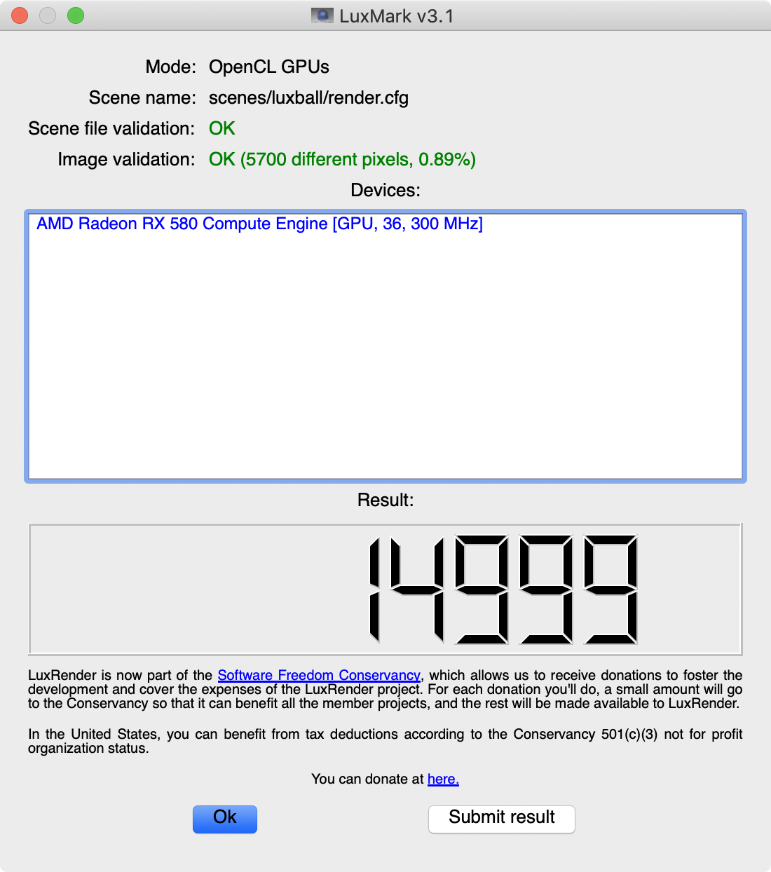 Anyone have a LuxMark luxball score in the latest Mojave beta for the Pulse RX 580?