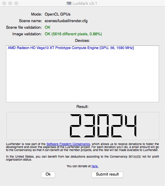 On my MacPro 6 core 3,33 Ghz with a Geforce 980 I get 11.8 frames/sec in NeatBench. Is this Vega really that slow?