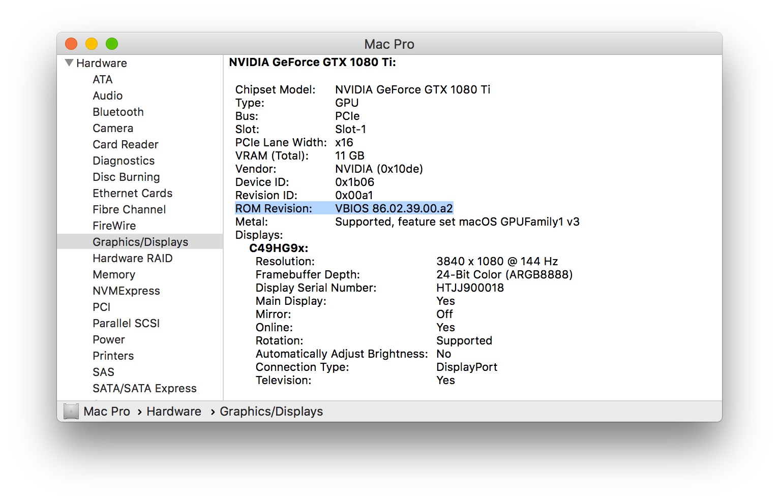 I'm debating of getting a 1080 to replace my RX580...can I just plop in any 1080 and will there be issues such as sleep and fan speed?I've got a Vega FE running in my Mac Pro now. Probably temporary. Booted no problem but I've also got the fans running too high. The card isn't hot. Too bad... I found a used card and might keep it since it looks so sweet in my Mac, but I'll probably replace it with another 1080 Ti for more 'bang-for-buck'.