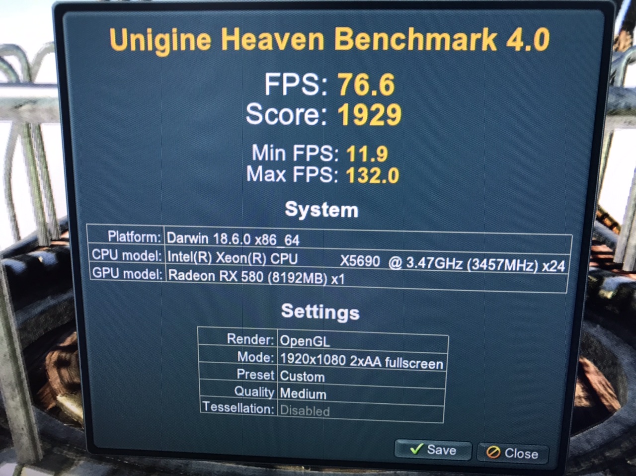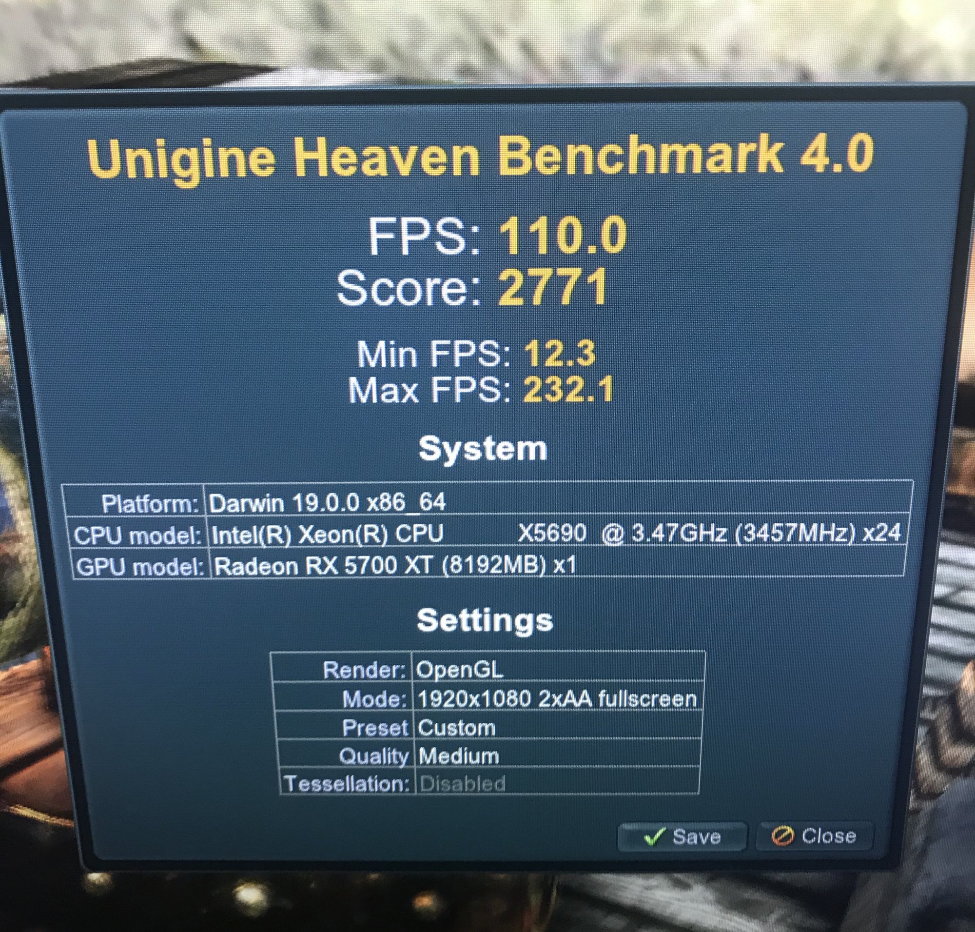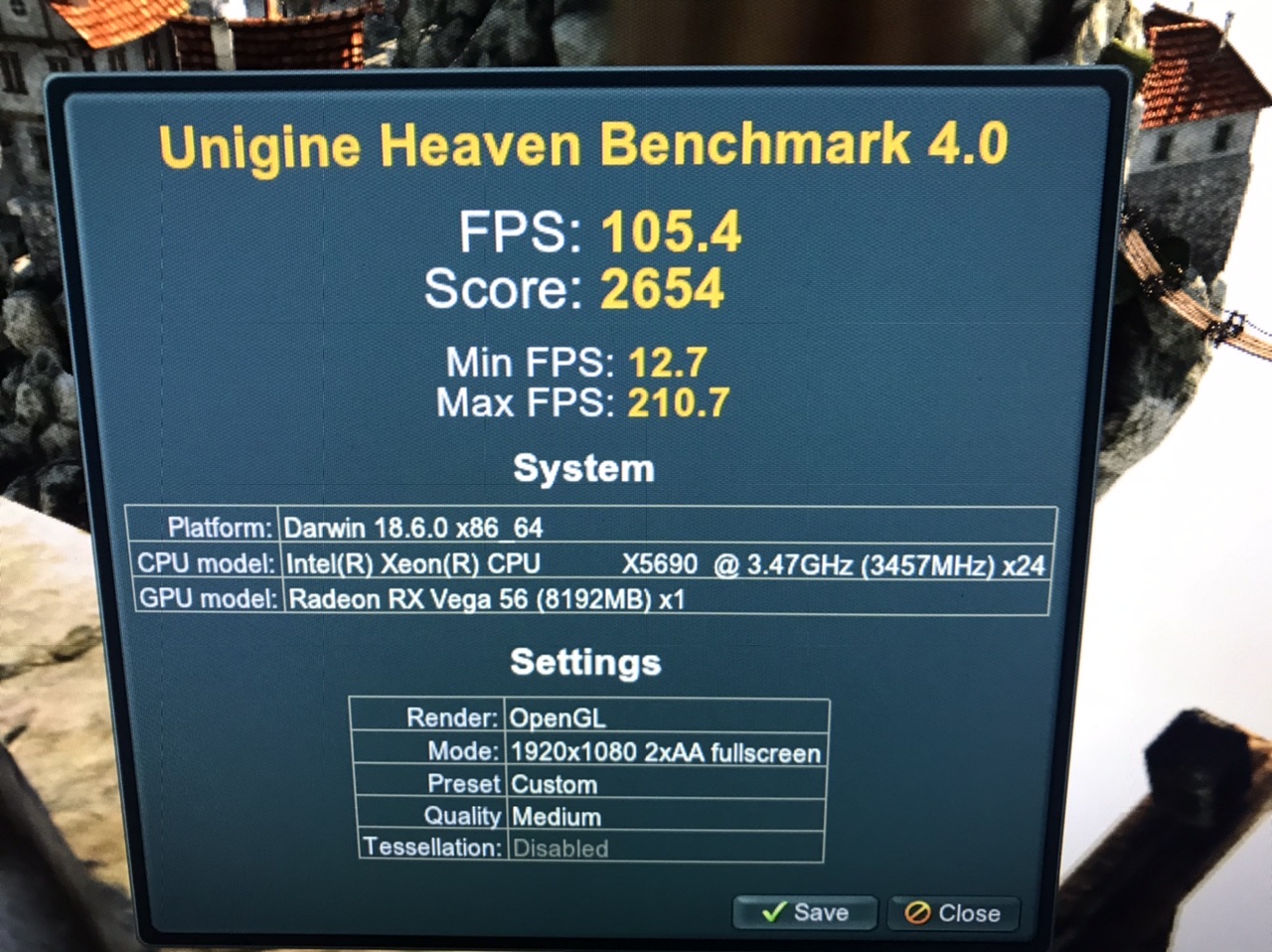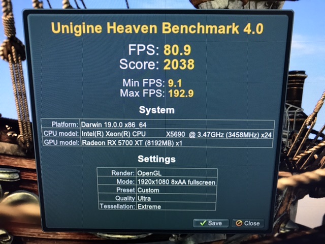 Comparisons for various Radeon cards in Heaven benchmark, all on Medium/2xAA/1920x1080 all on a vanilla Catalina install on the same machine.