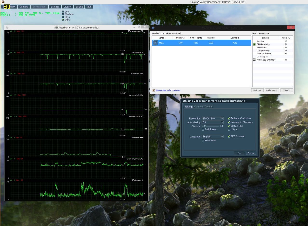 Just playing back about 2 minutes of my 1080p/60FPS iPhone 6 video (the one I mentioned earlier) in 'Quick Look' got my GPU to 98ºC and the fans ramped up. That simply should NOT happen on a £2,500 computer in 2015!