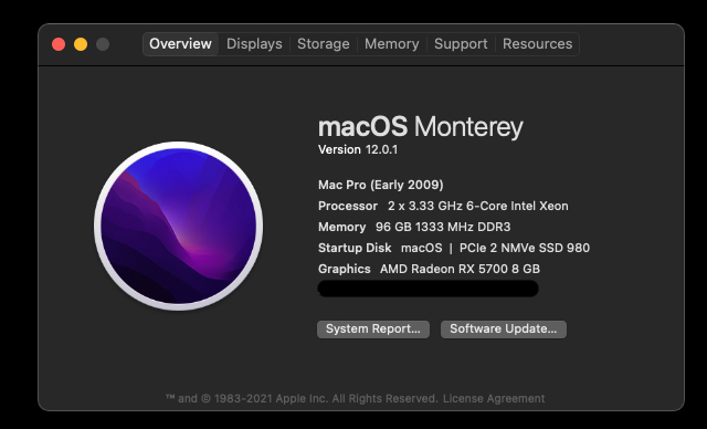 As per my signature -- I have a 4,1>5,1 with dual X5680 and 96GB of RAM. I'm running macOS 12.0.1 from one NMVe blade and Windows 11 from another separate NMVe blade, both on the same dual NMVe PCIe card.