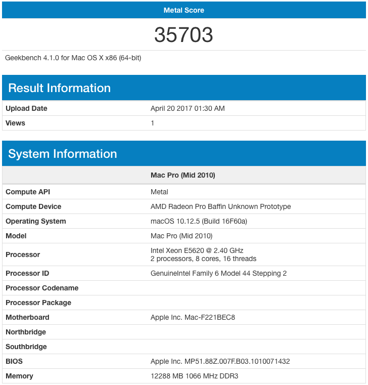 I have dual 580's but never got lower then 25 seconds in Public Beta 5 Sierra (10.12.6) and PB4 (I think) in High Sierra.
