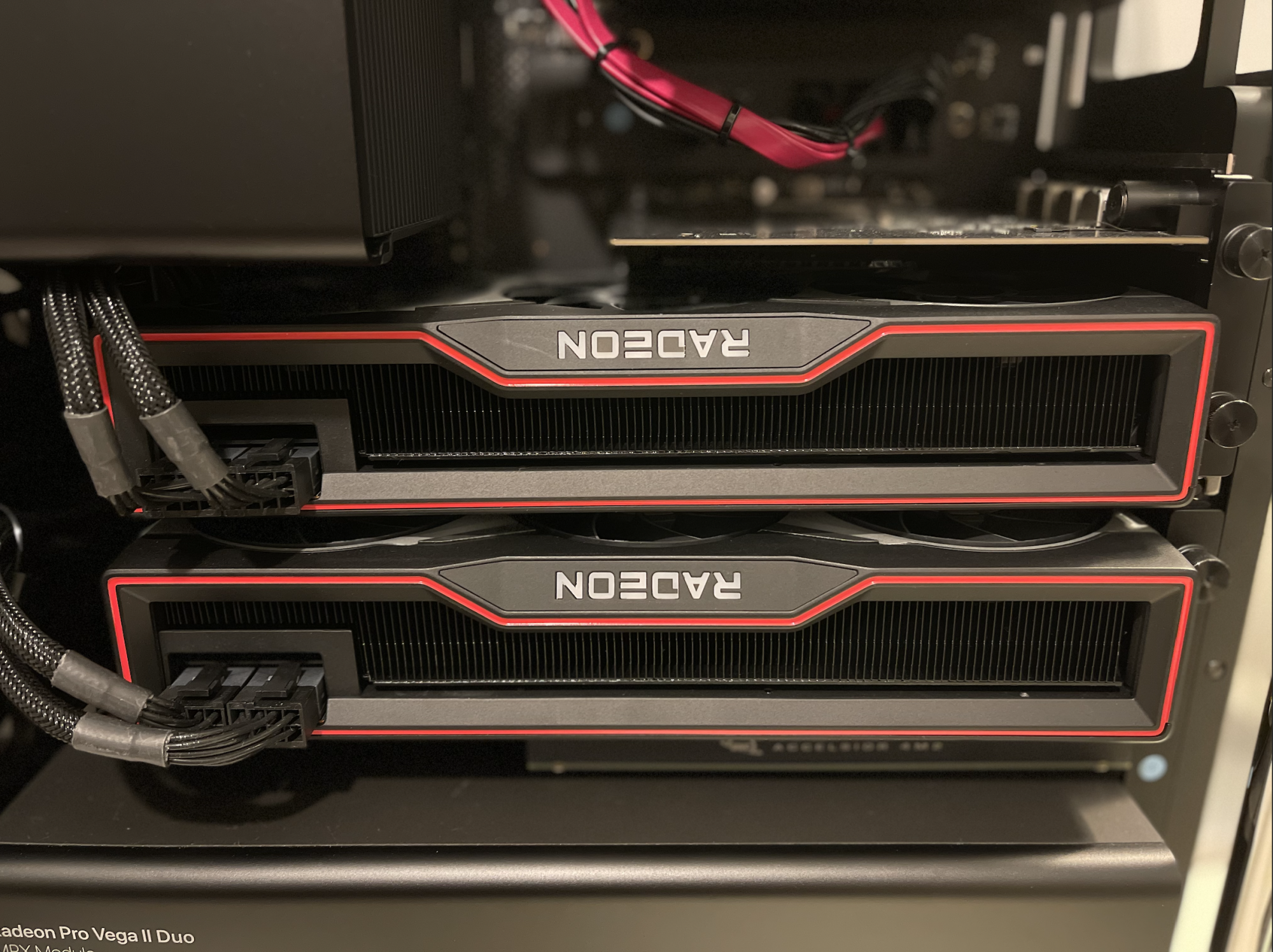 s4ru i have the same mac pro setup. are those 2 6800xt or 2 6900xt. looking to add that same setup when I can find them in stock. I only thought I could fit one.