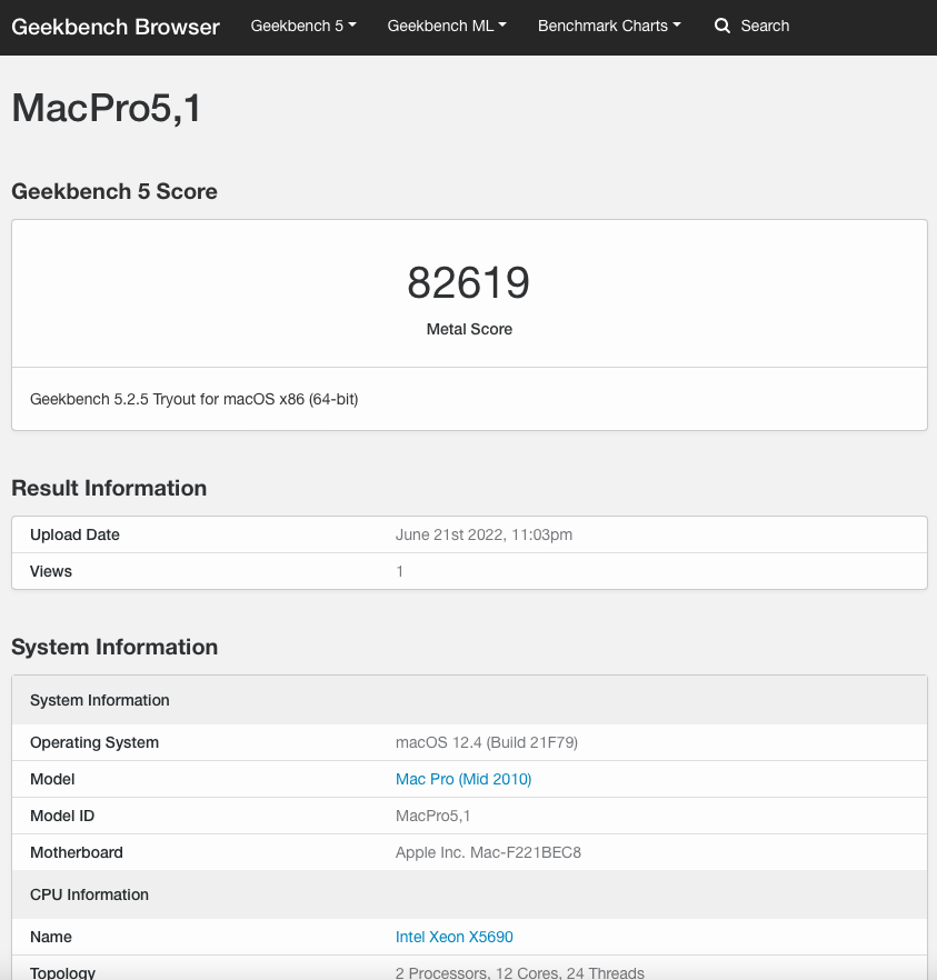 I finished purchasing a XFX 6600 XT (SWFT 210), followed the instructions and now it flawlessly works on my cMP 5.1. Now, how can I reliably test its performance? BTW I attached a 2010 27" iMac via display port and it works perfectly as an external display! Monterey on cMP and High Sierra on iMac