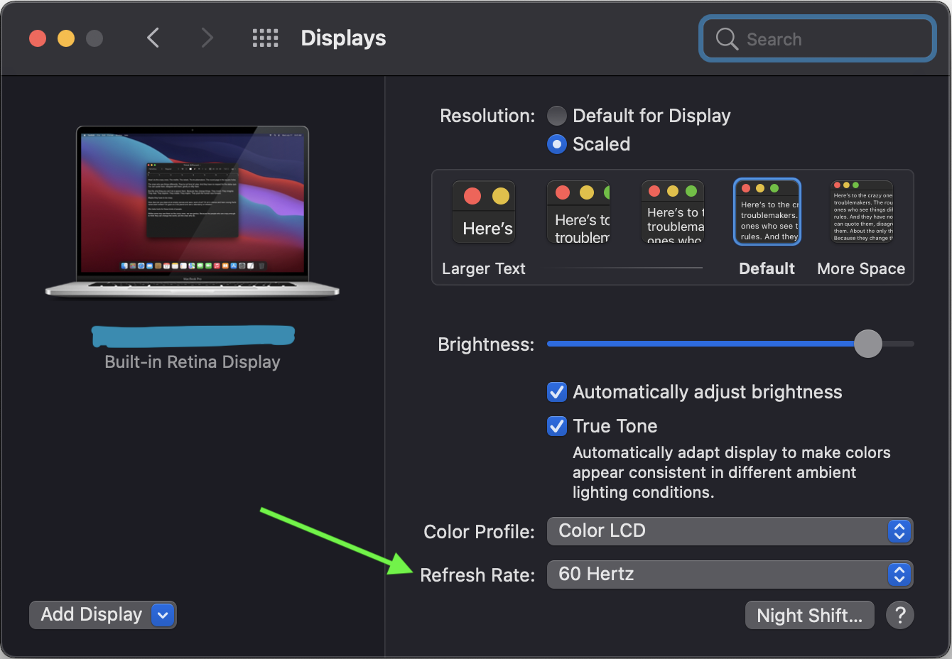 Also, when you go into Settings > Displays : Can you select 120 as the refresh rate (from the drop down)?