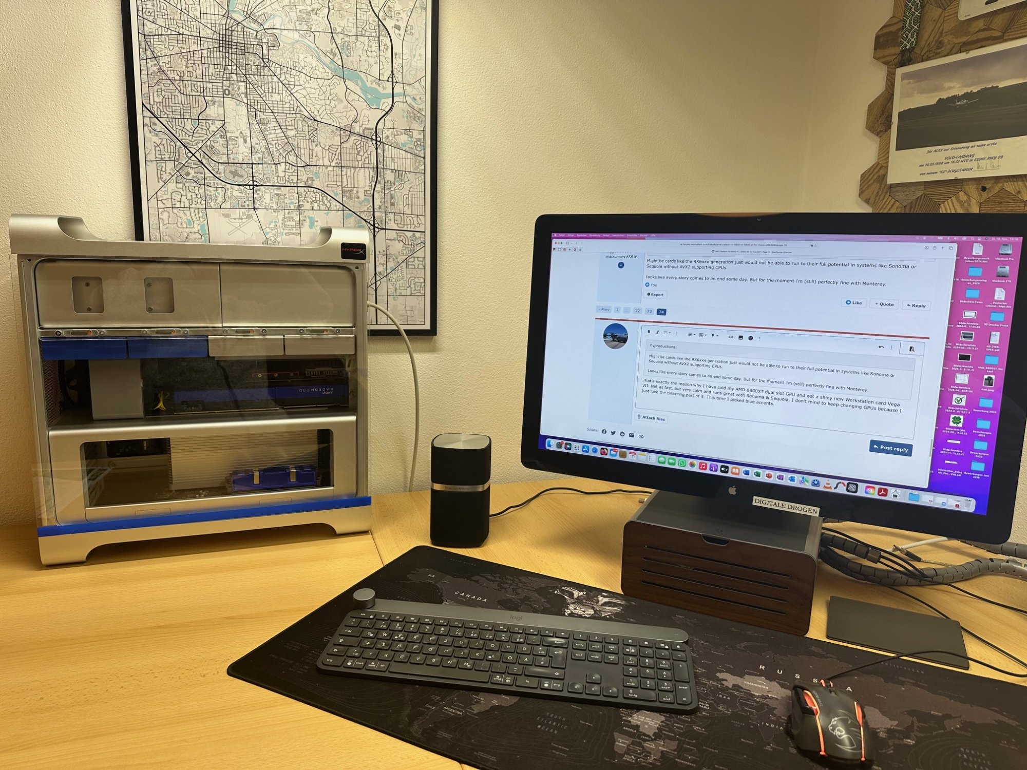 In order to upgrade my actual GPU ATI Radeon 5870, I've bought a GYGABYTE Radeon RX6600XT. So I followed the described procedure to Patch the new GPU, using the generic FixRX6x00ROM_012. Once finalized all the process from a PC WIN11 i9/12900, and installed the new card on the Mac, the boot screen is OK, the password screen is OK (With my designed background), but when the all the boot and login process is finished, the background is WHITE. (I mean I can see the icons and bar and menus... but with a WHITE background). I can't change to an active "nature" background nor any picture but the "Solid Color" ones. Also the cursor do not moves soft and silk but jumping and freezing. Movies (even a short 1 minute .mov) are displayed same way jumping frames and freezing others.