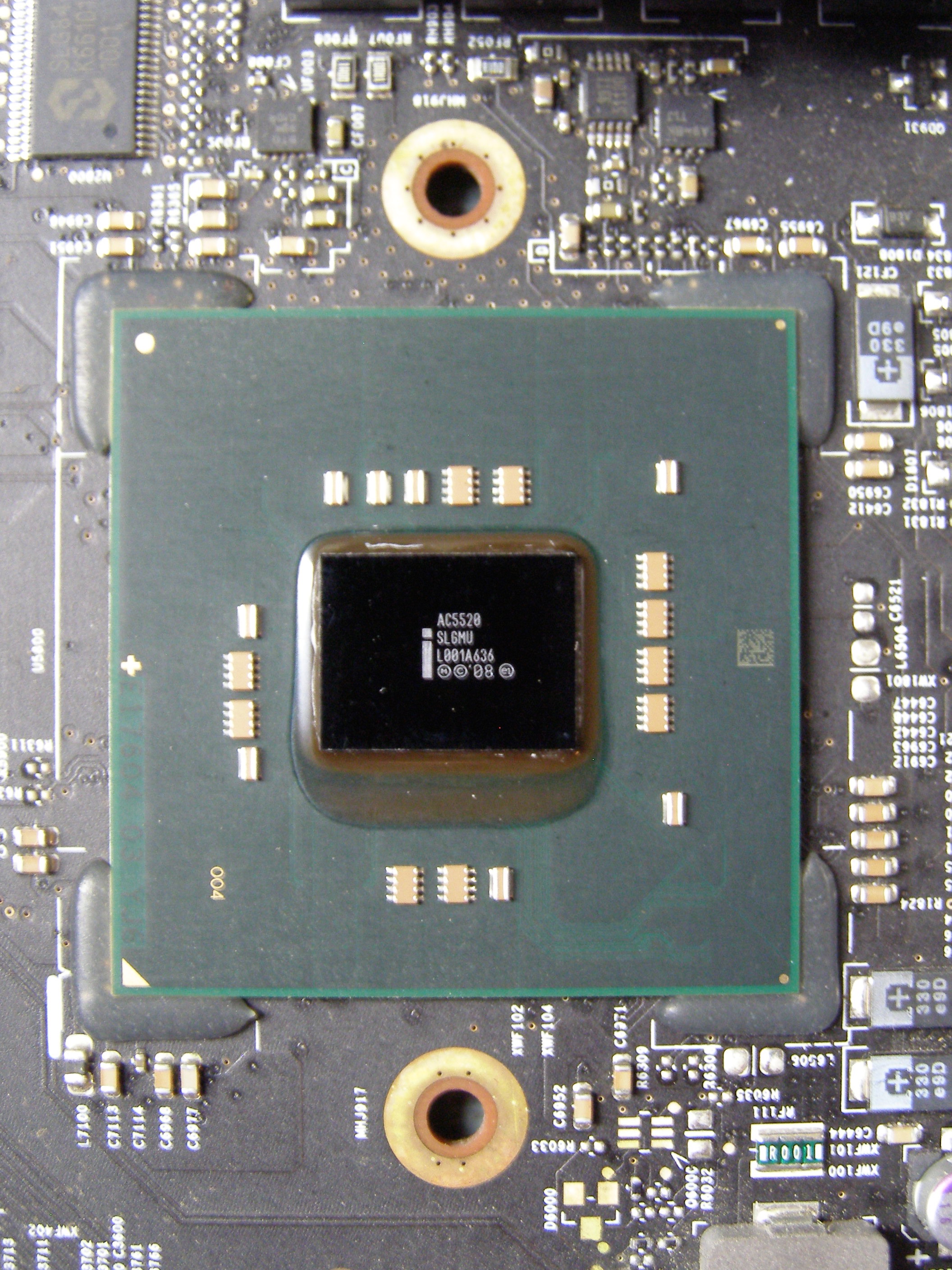 And here is an actual picture of the AC5520 IOH "Quasi Northbridge" die from a Mac Pro 4,1 (2009 factory) dual CPU Tray . Here is something interesting : a 5520 chip .