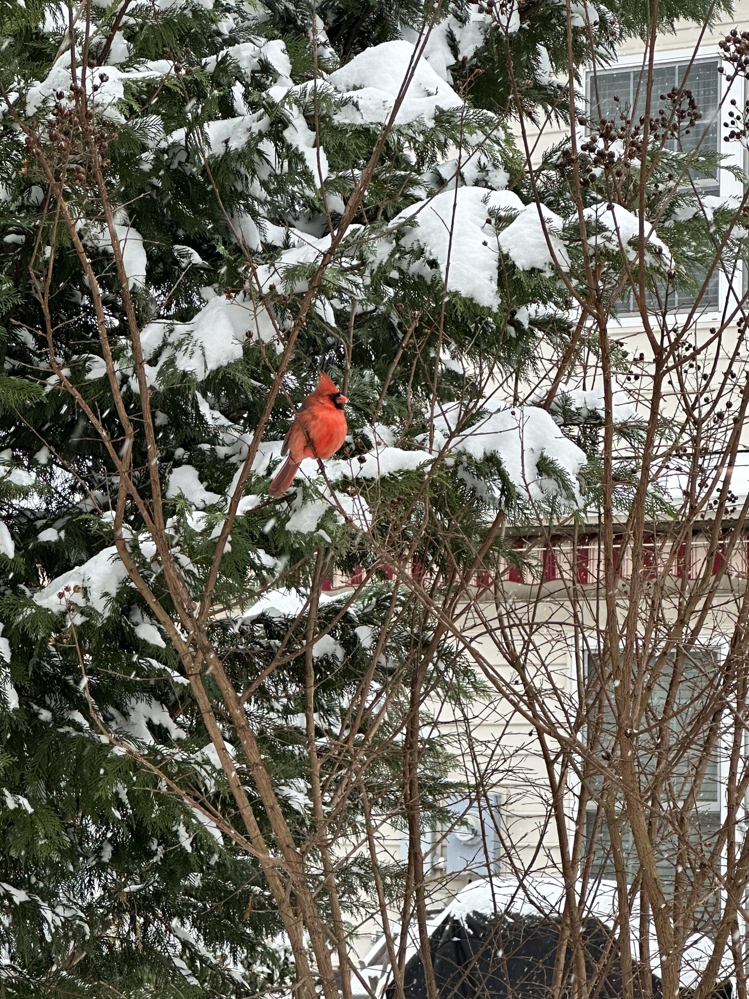 Lovely photo! That's a lovely looking bird, the most exotic I've had in the garden so far were a pair of Doves. But they did make my day. Beautiful colour.Its not often we get a good snowstoem in Virginia, but we got a good one going now. I got a pic of this cardinal out back just before it took off (was hoping not to spook it from my window).