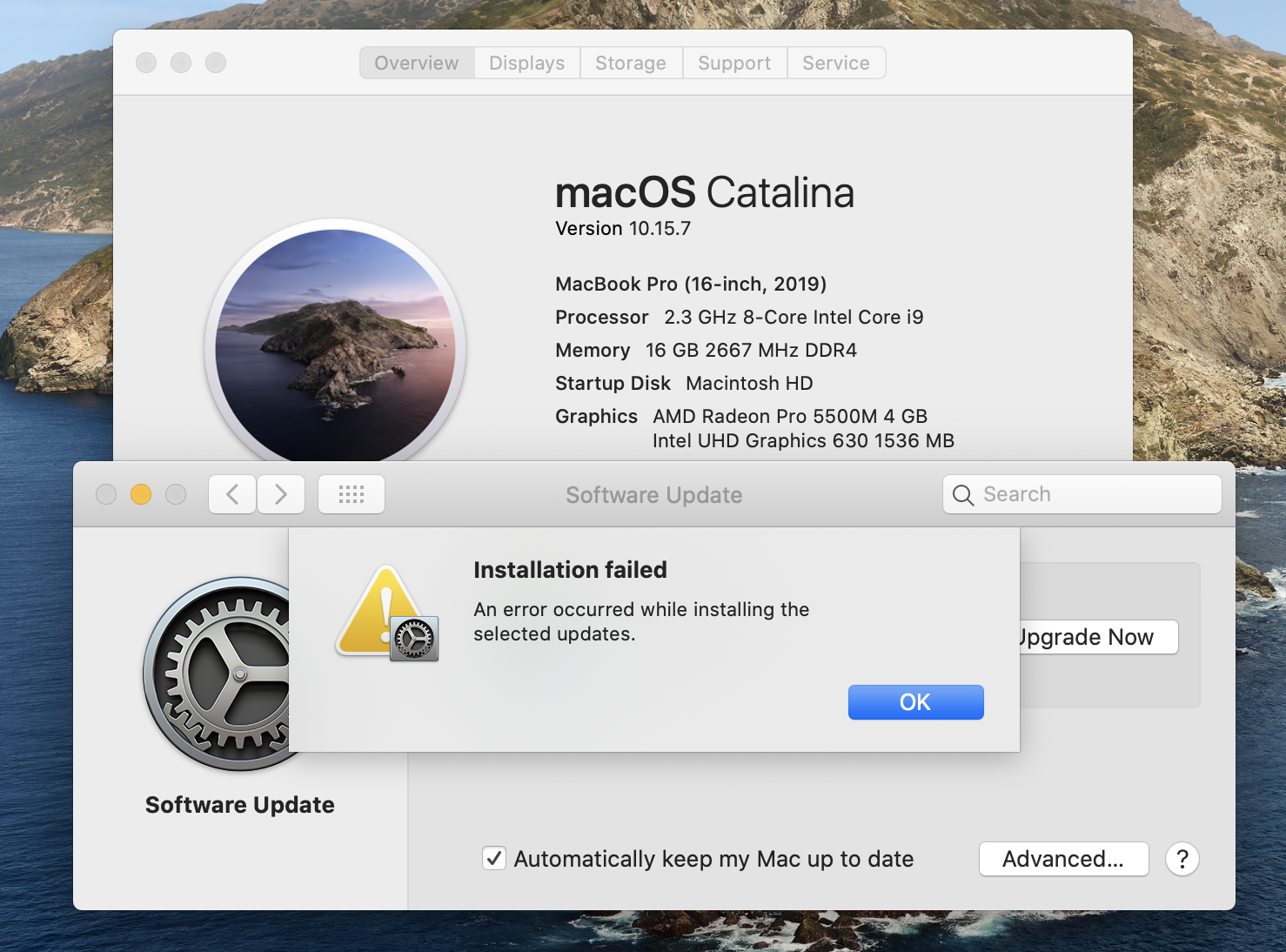 Keep getting this error when trying to install Big Sur: "An error occurred while installing the selected updates."