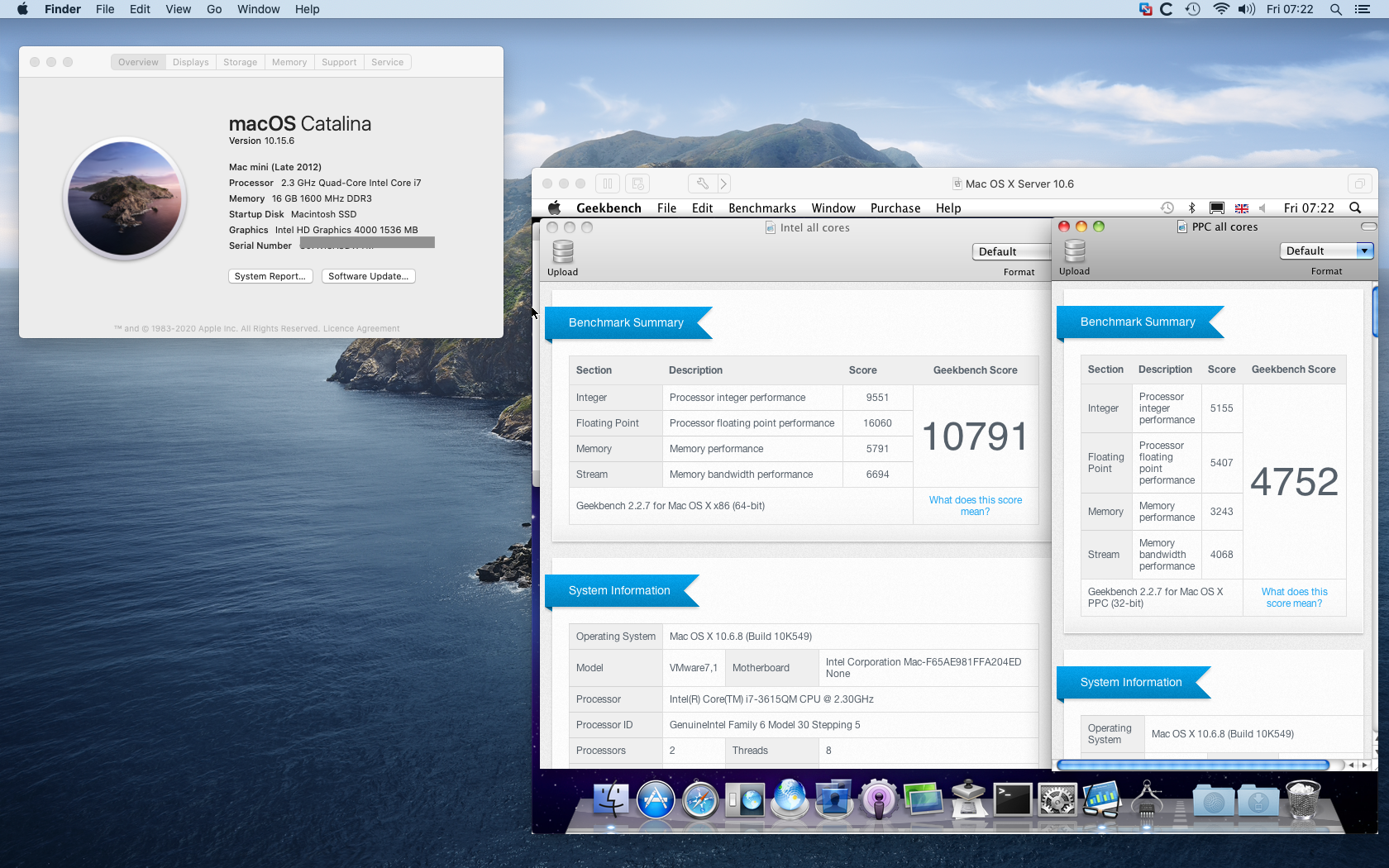 However my little exercise does show that an 8-year old Mac Mini can run OSX PPC apps (assuming no compatibility issues with emulation of course) much faster than any PPC ever could, at a tiny fraction of the footprint and energy consumption. Basically to show that most of us here are just having fun with our PPC machines, and if we actually had a need to run PPC software there are better ways of doing it
