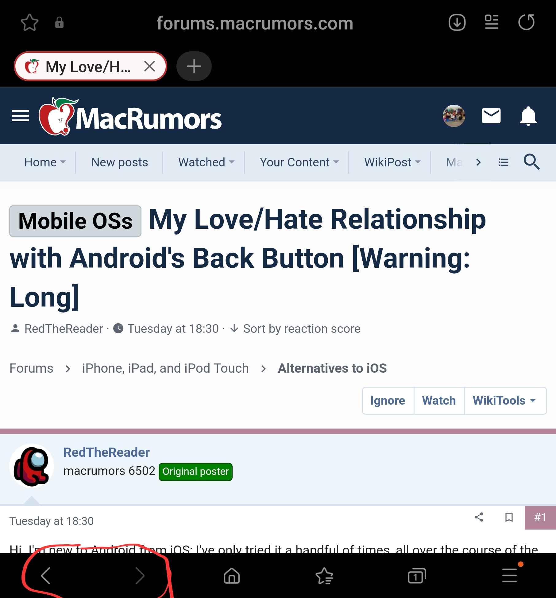 What's more is that the back/forward buttons on Android aren't always feature-par to the same button on the same browsers in other systems: they don't give you a drop down/up of the previous sites you've navigated to. If you want to go back say 4 times, you'll have to press the button that many times. This isn't always the case (like Firefox does give you the drop down) but it's missing even in the default Chrome.