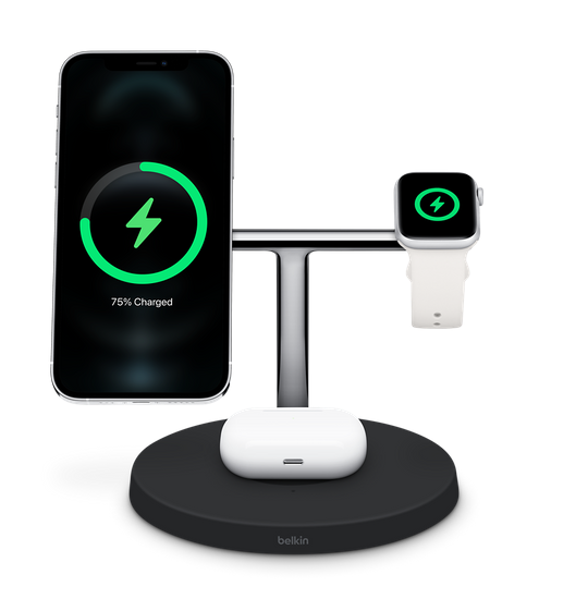 Thanks, I know these exist, but I am looking for something that holds and charges the iPhone like those and then the Apple Watch without having a wireless charging pad on bottom, since there is a MagSafe AirPods case the pad is not needed.