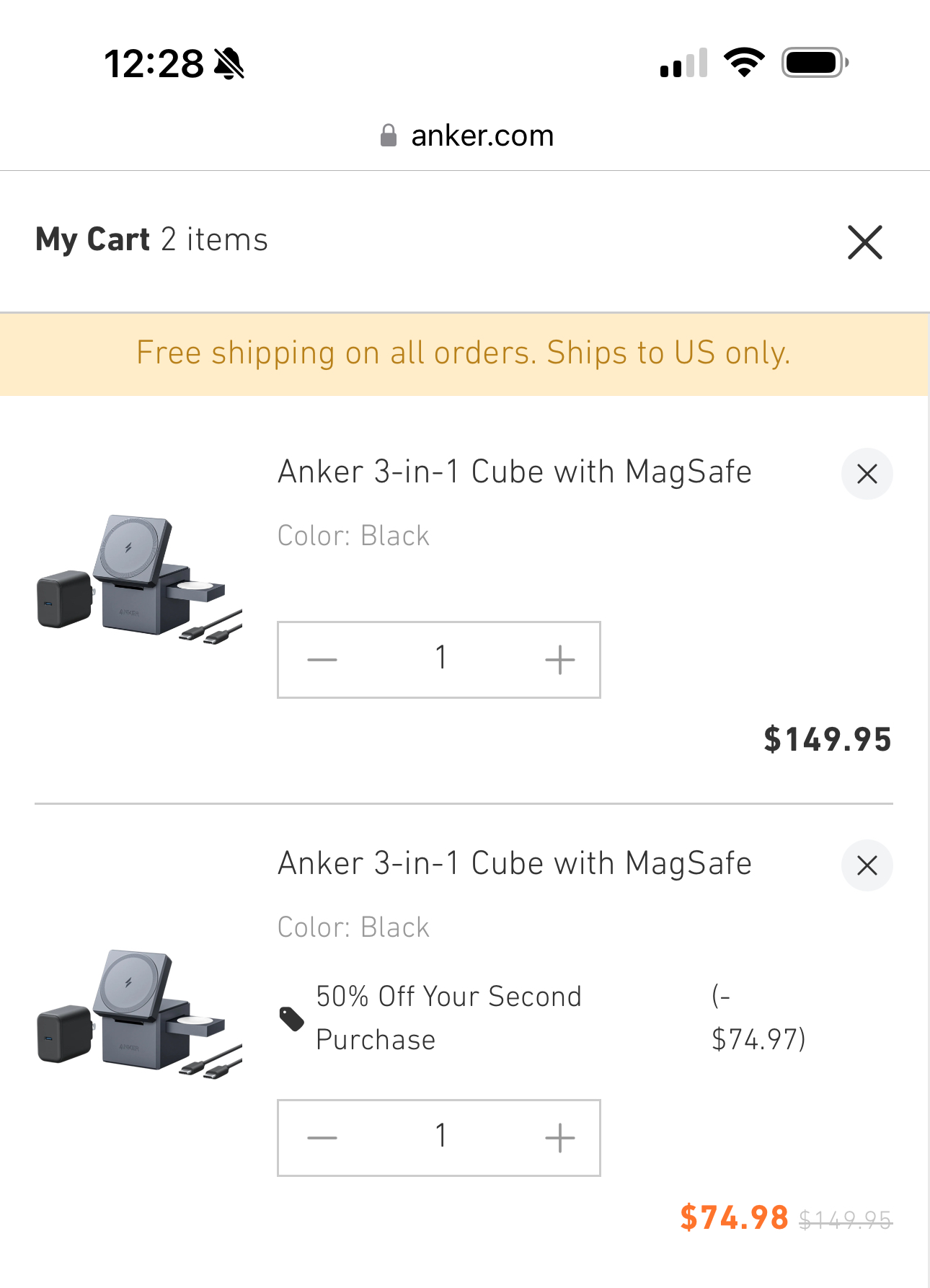 In terms of the BOGO sale, you'll need to purchase two charging products that are not already discounted in order to get the discount. If two or more items are purchased, Anker will automatically take 50 percent off the least expensive item.