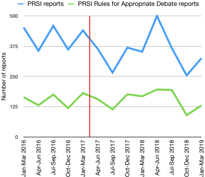Reviewing this policy, and moderation in the PRSI forum as a whole, helps us to investigate whether the policy has been effective in its goals, as well as addressing potential concerns that members have raised over the last year.