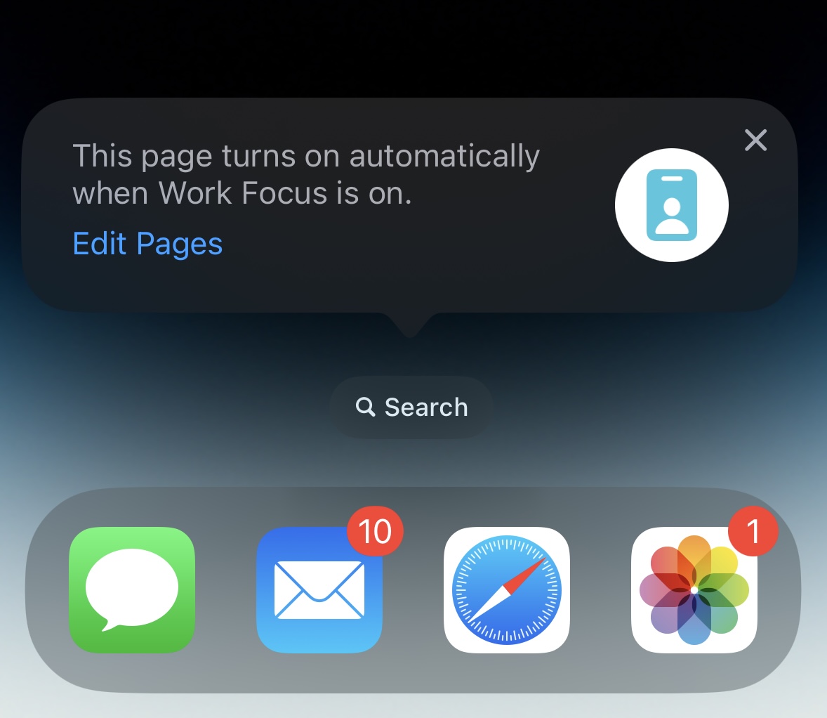 Every day I have a work focus mode that turns on which includes a custom homepage layout and a second page that has a few more apps at the top but is mostly empty. I have to dismiss this popup separately on both pages every morning. Sometimes it shows up under my icons too, like it's glitching out. Is there some setting or something that I'm missing? It seems like this shouldn't be normal to give me this sort of tutorial every day? Has anyone found a way to fix this? Thanks.