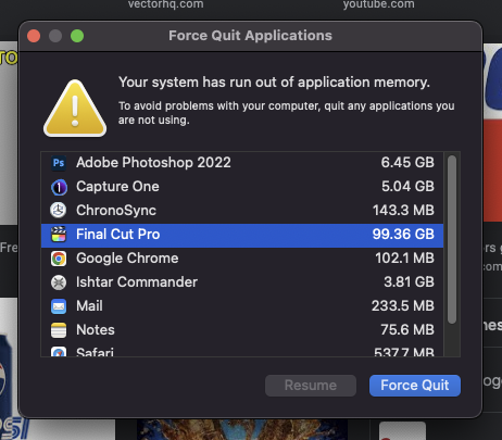 Then I discovered the following: If you have a AVCHD file on the highest level of an HD or SSD, FCPX sees the disk as a camera (card) and starts working on the whole disk as if it was a camera memory card, which fills up all the memory until it crashes. When you put the AVCHD file in a folder on the disc, this does not happen.