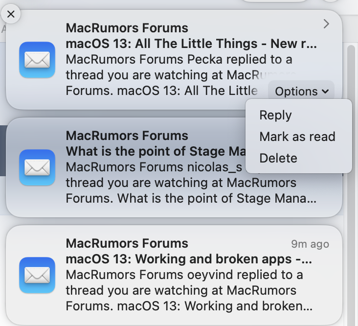 I don't remember HAHAI believe that hasn't changed - prior to Big Sur, you didn't have to hit the Options drop down. Hovering over the notification would give a delete and reply button, if I recall.