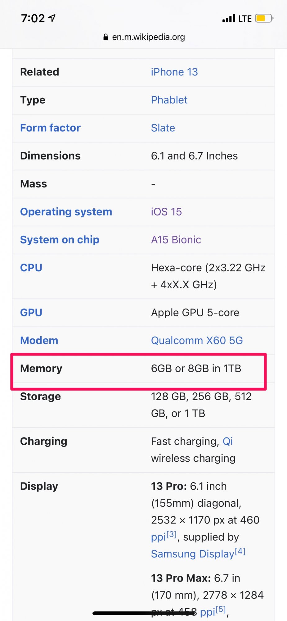 We'll find out once the 1TB are in the customers hands. I find it hard to believe it'll be more than 6GB since that's what's being said on the front page here.According to Wikipedia, the iPhone 13 Pro and Pro Max with 1 TB of storage do in fact have 8 GB of RAM.
