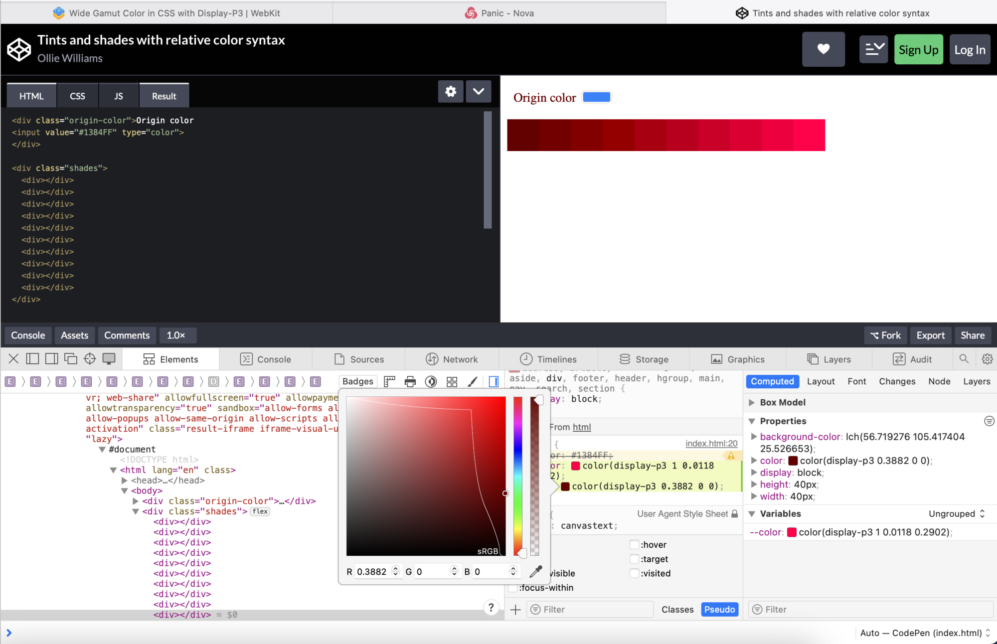rgb() like rgb(255,128,200), P3 colors can't be defined like that. Safari has a built-in P3 color picker, I would like a standalone app like that.