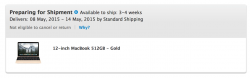 On the iCentre site in The Netherlands I saw when I order I new 12" MacBook I would get it next week (6 May), called them and that is true they said.....strange when Apple still is saying 4-6 weeks....